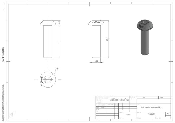 Button-Head Screw ISO 7380 M4x16, zinc-plated