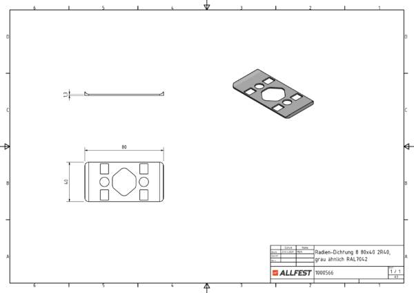 Radius Seal 8 80×40 R40, grey, sim. RAL 7042