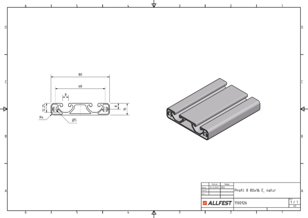 Profil 8 80×16 E, natur
